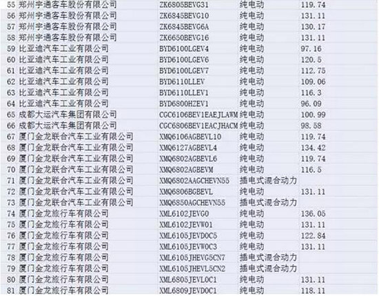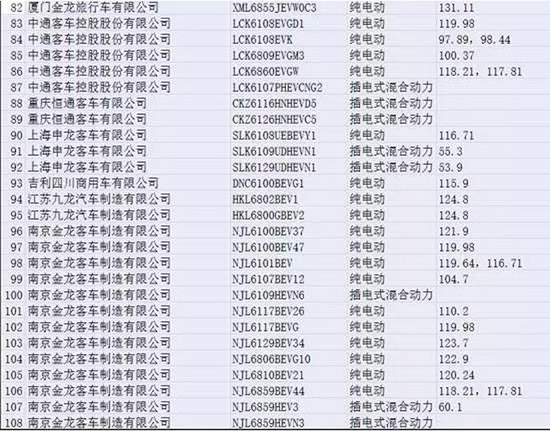 按照非快充類純電動(dòng)客車(chē)系統(tǒng)能量密度(Wh/kg)115以上、快充類純電動(dòng)客車(chē)快充倍率15C以上、插電式混合動(dòng)力(含增程式)客車(chē)節(jié)油率水平60%以上,才能享受中央財(cái)政補(bǔ)貼最高系數(shù)標(biāo)準(zhǔn)來(lái)看,可獲得最高補(bǔ)貼調(diào)整系數(shù)的非快充類純電動(dòng)客車(chē)有94款。