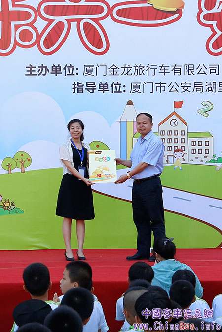 活動的最后是捐贈環(huán)節(jié),金旅客車國內(nèi)銷售總監(jiān)賴志藝上臺,將安全手冊贈送給華悅學校?!缎〗鹣髢和踩謨浴肥菑B門金旅特別制作的,通過漫畫的形式,讓小朋友們在生動有趣的閱讀中,學習在生活細節(jié)中增強安全意識, 加強面對各種危險時的應急能力。