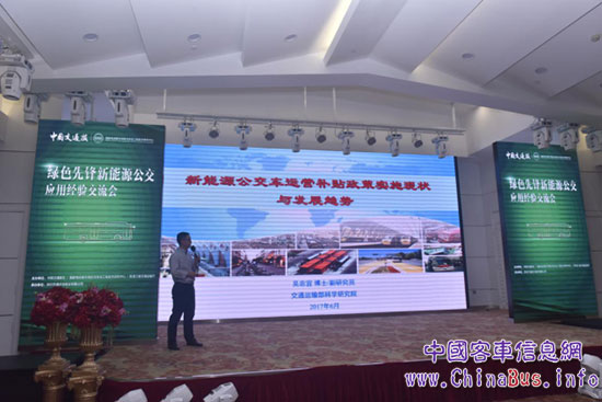 經驗交流會現(xiàn)場,交通運輸部科學研究院吳忠宜博士解讀了“新能源客車行業(yè)發(fā)展現(xiàn)狀及政策補貼趨勢”。他認為新能源汽車產業(yè)將繼續(xù)快速增長,2019年新能源公交車輛數(shù)將達到28.9萬輛。今后,新能源公交車財政補貼逐漸由購置環(huán)節(jié)向運營環(huán)節(jié)傾斜,購置環(huán)節(jié)的補貼力度將逐漸變小,直至完全退出,而運營使用環(huán)節(jié)的補貼力度可能進一步加大。他介紹,相關部門正在籌備建設交通運輸行業(yè)國家級新能源公交車運營監(jiān)管信息平臺,提升對新能源公交運營情況監(jiān)管能力。