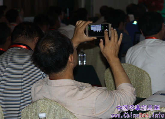 認(rèn)真地分享——牡丹江公交集團(tuán)有限公司總經(jīng)理助理劉葆春正在分享新能源公交運營經(jīng)驗。