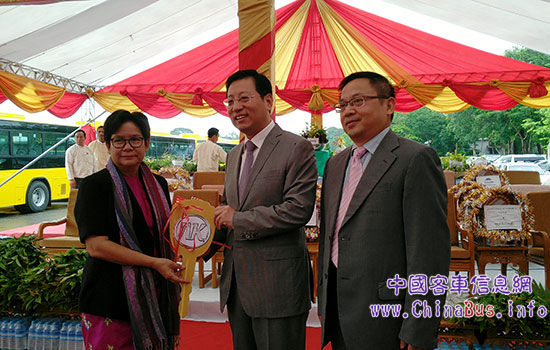 洪亮大使將安凱客車(chē)“金鑰匙”交給仰光省交通部長(zhǎng)
