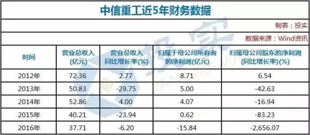 查詢中信重工往年業(yè)績發(fā)現(xiàn),自2012年7月6日上市以來,中信重工營業(yè)收入和營業(yè)利潤呈下降趨勢。營業(yè)收入由2012年的72.36億元下降至2016年的37.71億元,歸屬于母公司所有者的凈利潤由2012年的8.71億元下降至2016年虧損15.84億元。