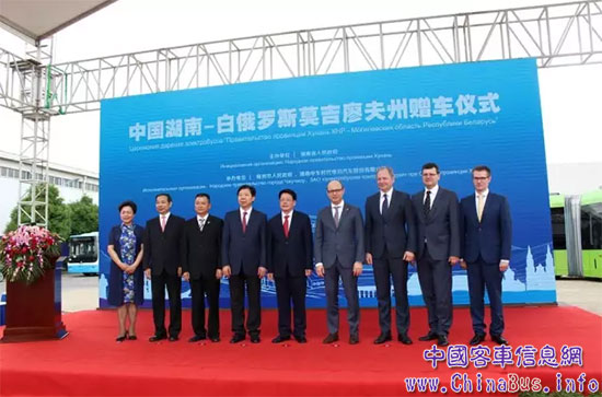 2017年是白俄羅斯第三大城市、莫吉廖夫州的首府莫吉廖夫市建城750周年,在其周年慶典即將到來之際,湖南省向白俄羅斯莫吉廖夫州贈送了兩輛定制版純電動巴士,贈車儀式在中車株洲所旗下中車電動舉行。對此,白俄羅斯駐華大使魯德表示:“收到這份來自中國湖南的禮物,顯得彌足珍貴?!?