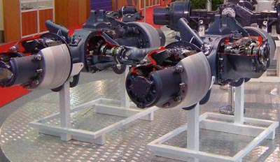 在海格客車技術中心工程師王永濤看來,輪邊驅(qū)動具備十分突出的優(yōu)勢?!笆紫?,采用輪邊驅(qū)動可以使車輛驅(qū)動系統(tǒng)及整車結構更加簡潔、緊湊,容易實現(xiàn)低地板及站立面積和載客數(shù)的增加。同時,還能使整車重心降低,提高車輛行駛穩(wěn)定性。另外,輪邊驅(qū)動系統(tǒng)由于動力傳動鏈短,而且能通過能源管理和動力系統(tǒng)控制策略優(yōu)化驅(qū)動及制動力分配,降低能源消耗,提升車輛燃油經(jīng)濟性。與內(nèi)燃機、集中電機驅(qū)動車輛相比,輪邊驅(qū)動技術還能大大改善車輛的行駛動力學性能,能夠通過電機控制技術,較為容易的實現(xiàn)ABS、TCS及ESP功能;除此之外,該系統(tǒng)可提高車輛轉(zhuǎn)向行駛性能,并有效減小轉(zhuǎn)向半徑,甚至零轉(zhuǎn)向半徑,大大增加了轉(zhuǎn)向靈便性?!彼f道。
