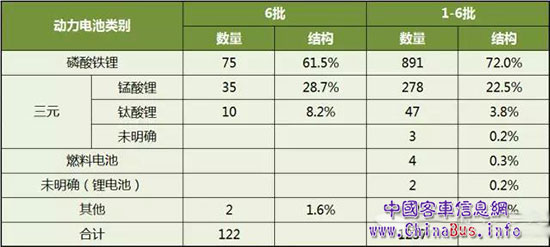 第1-6批新能源客車推廣應(yīng)用推薦車型動力電池統(tǒng)計