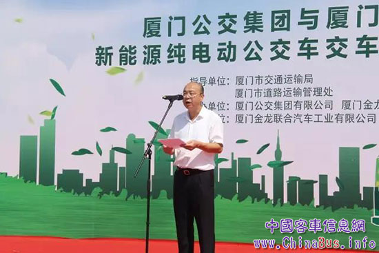 廈門(mén)公交集團(tuán)和廈門(mén)金龍汽車(chē)集團(tuán)純電動(dòng)公交車(chē)交車(chē)上線運(yùn)營(yíng)啟動(dòng)儀式在廈門(mén)高崎T(mén)4公交場(chǎng)站舉行,金龍汽車(chē)集團(tuán)501輛新能源公交車(chē)交付廈門(mén)公交集團(tuán)。據(jù)了解,此次更新投放501輛新能源公交車(chē)輛為2017年9月廈門(mén)會(huì)晤期間的重點(diǎn)保障項(xiàng)目,其中218輛為純電動(dòng)公交車(chē)。