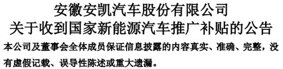 7月22日,安凱客車發(fā)布關(guān)于收到國家新能源汽車推廣應(yīng)用財政補貼公告,公告稱根據(jù)國家財政部《關(guān)于下達節(jié)能減排補助資金用于2016年新能源汽車第一批補助資金清算的通知》(財建[2017]384號)等相關(guān)規(guī)定,公司于近日收到合肥市財政轉(zhuǎn)撥付的公司應(yīng)收2016年國家新能源汽車第一批推廣補貼款12,366萬元。