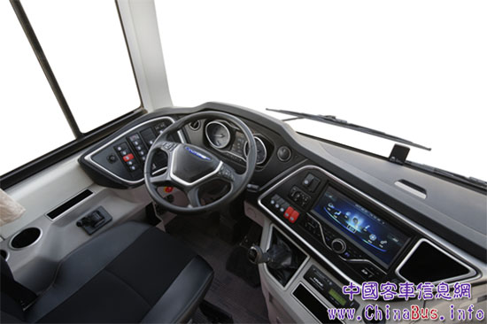 不僅如此,ZK6128HQ還配有12.3英寸集成中控,可支持觸摸及按鍵兩種操作方式,同時集成空調(diào)、除霜、水暖、音響、導航、藍牙和車聯(lián)網(wǎng)等多項功能,將智能化操控體現(xiàn)得淋漓盡致。