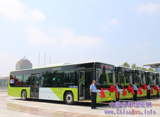【整裝待發(fā)的福田歐輝純電動公交車】