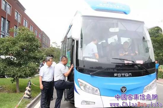 領導乘坐福田歐輝氫燃料電池客車前往清華大學