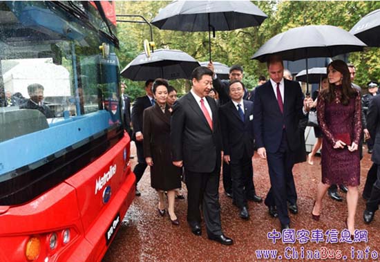 2015 年 10 月, 習近平主席和威廉王子等檢閱比亞迪純電動雙層大巴