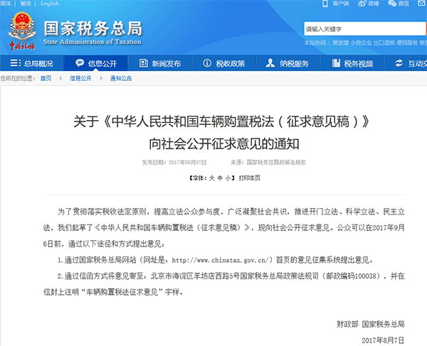 為落實(shí)稅收法定原則,按照黨中央批準(zhǔn)的《貫徹落實(shí)稅收法定原則的實(shí)施意見》要求,財(cái)政部、稅務(wù)總局會(huì)同有關(guān)部門起草了《中華人民共和國(guó)車輛購(gòu)置稅法(征求意見稿)》(以下簡(jiǎn)稱《征求意見稿》)?,F(xiàn)說(shuō)明如下: