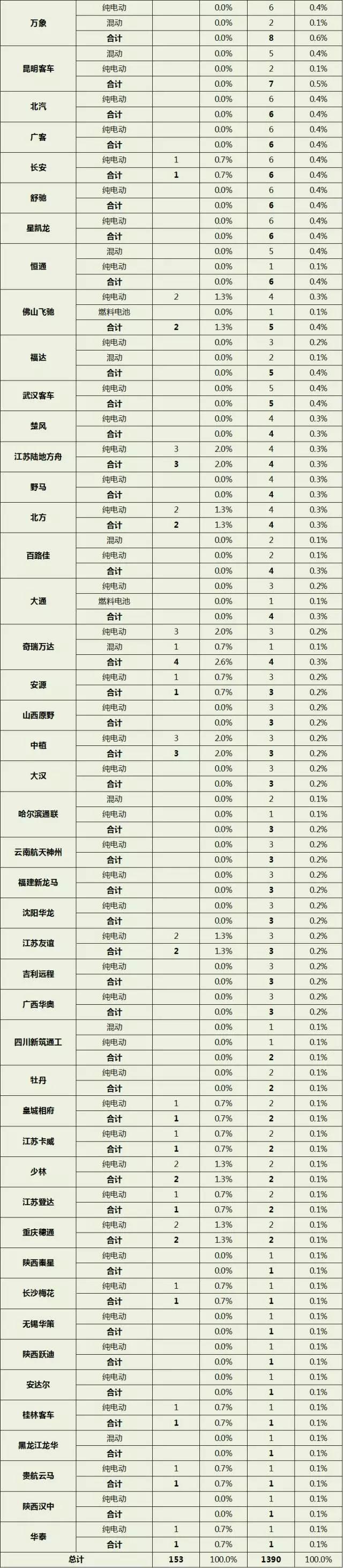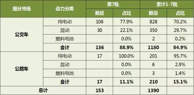 申報(bào)第7批新能源汽車推廣應(yīng)用推薦車型中的客車車型共計(jì)153輛,累計(jì)1390輛。