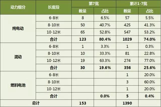 第1-7批新能源客車推廣應(yīng)用推薦車型細(xì)分長度段統(tǒng)計(jì)