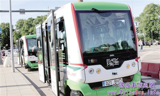 8月8日,愛沙尼亞首都塔林試營為期一個月的無人駕駛公共汽車項(xiàng)目,乘客們有機(jī)會登上集高科技與綠色能源于一身的電動小面包車,免費(fèi)體驗(yàn)新穎的公共交通出行方式。圖為兩輛無人駕駛公共汽車停在街頭。