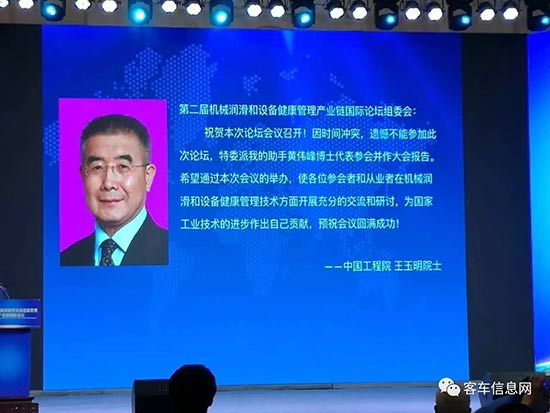 論壇不僅邀請(qǐng)到了自動(dòng)控制專家、中國工程院吳澄院士,中國機(jī)械工程學(xué)會(huì)副理事長兼秘書長陸大明、清華大學(xué)教授宋士吉等知名專家學(xué)者,而且來自德國、美國等國的專家學(xué)者代表也不遠(yuǎn)萬里前來赴會(huì);同時(shí),國內(nèi)外眾多知名相關(guān)科研院所、風(fēng)電主機(jī)廠、商用車整車制造廠、工程機(jī)械及大型設(shè)備制造廠家、鋼鐵冶金企業(yè)、公交企業(yè)、媒體等百余家單位的代表共約500人也蒞臨現(xiàn)場(chǎng),共同分享國際最前沿技術(shù)成果,探討機(jī)械潤滑與設(shè)備健康管理方面的前沿理念與應(yīng)用實(shí)踐。值得一提的是,論壇期間,機(jī)械設(shè)計(jì)及理論(流體密封)專家、中國工程院王玉明院士還專門發(fā)來賀信,并委派助手清華大學(xué)黃偉峰博士代表其參會(huì)做報(bào)告。