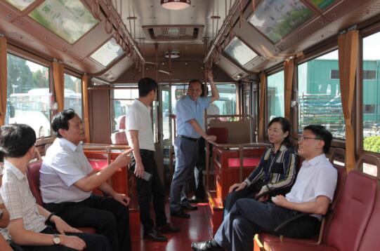 坐在參觀的仿古鐺鐺車上,魏銀倉(cāng)董事長(zhǎng)向鄭廳長(zhǎng)介紹了銀隆純電動(dòng)客車的情況。近年來(lái)在北京、邯鄲、西安、珠海等全國(guó)40多個(gè)城市取得良好的運(yùn)營(yíng)業(yè)績(jī),同時(shí)在2014APEC亞太峰會(huì)、2016第二屆中美低碳峰會(huì)等多項(xiàng)國(guó)際活動(dòng)上表現(xiàn)出絕佳的性能。