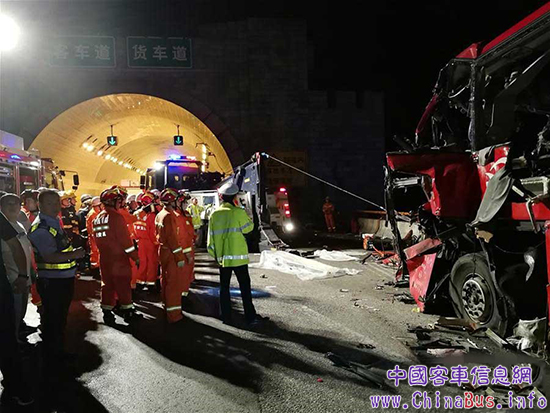 8月10日23時(shí)34分,河南省洛陽交通運(yùn)輸集團(tuán)有限公司一輛車牌號為豫C88858的客車(核載51人、實(shí)載49人),從四川成都出發(fā)前往河南洛陽,當(dāng)車輛沿京昆高速公路行駛至陜西安康境內(nèi)秦嶺一號隧道南口(1164公里930米)處時(shí)撞至隧道口外右側(cè)山體護(hù)墻,導(dǎo)致車輛嚴(yán)重變形損毀,共造成36人死亡、13人受傷。目前,事故詳細(xì)原因正在進(jìn)一步調(diào)查。