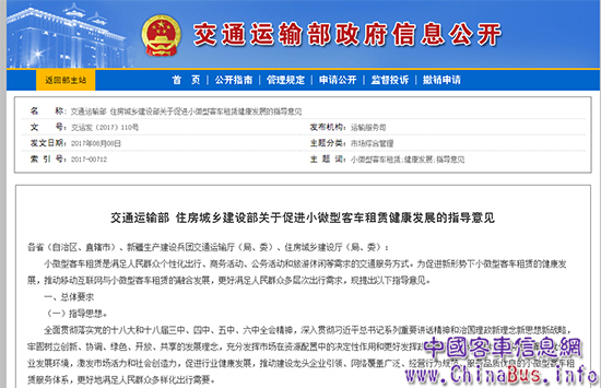 8月8日,由交通運輸部和住房城鄉(xiāng)建設(shè)部聯(lián)合發(fā)布的《關(guān)于促進小微型客車租賃健康發(fā)展的指導(dǎo)意見》(以下簡稱《意見》)正式出臺,明確了鼓勵分時租賃新業(yè)態(tài)的發(fā)展,并確定了分時租賃在城市綜合交通運輸體系中的定位。
