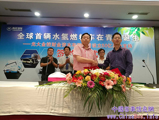 今天(2017年8月21日),全球首輛水氫燃料汽車在青年汽車誕生暨光大金控財金資本有限公司設(shè)立50億基金支持青年新能源汽車發(fā)展簽約儀式在浙江金華舉行。光大金控財金資本有限公司董事長李少平,青年汽車集團董事局主席、總裁龐青年等嘉賓出席了簽約儀式。