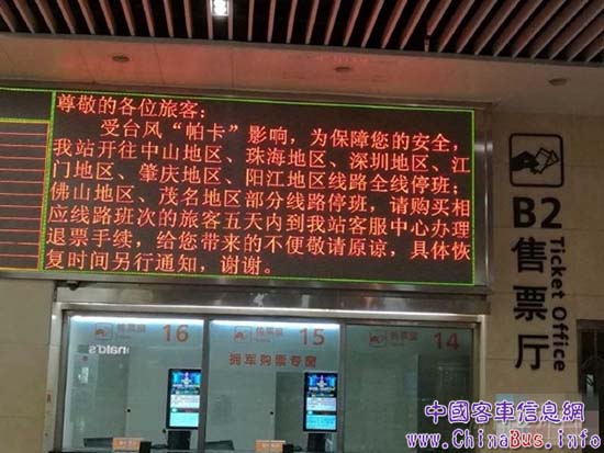 其中,省汽車客運站前往珠海、中山、江門、陽江、海南五個片區(qū)所有線路均全線停班。廣州市客運站前往深圳、中山、珠海、江門、肇慶、海南地區(qū)所有線路停班,停班班次339班,停班車輛173臺,停班線路首末時間5:50-22:30。其他地區(qū)線路發(fā)班正常。芳村客運站、滘口汽車站、永泰汽車站、夏茅汽車站、海珠客運站、廣州南汽車客運站、從化汽車站等對珠海、深圳、江門、肇慶、中山等方向76條班線個1108班次實施停班,客運站現(xiàn)場已做好停班信息公告、旅客引導(dǎo)、解釋、安撫和后勤服務(wù)等工作。