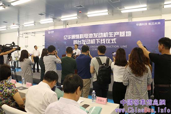 【福田歐輝10.5米氫燃料電池客車也亮相億華通張家口首臺燃料電池發(fā)動機下線現(xiàn)場】