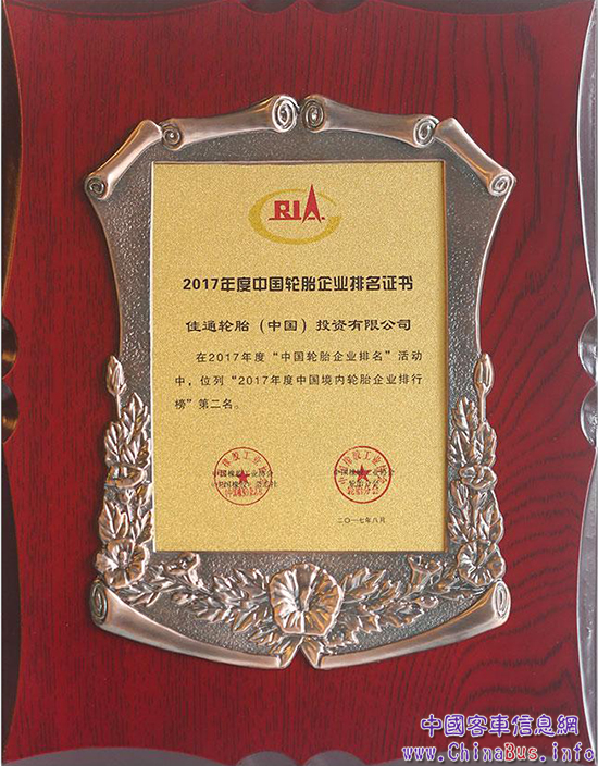 佳通輪胎獲“2017中國(guó)境內(nèi)輪胎企業(yè)排行榜”第二名