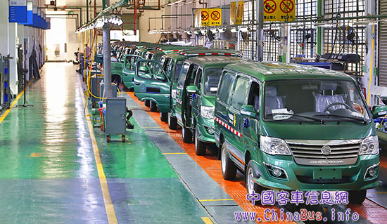 生產(chǎn)線上的金旅海獅郵政車