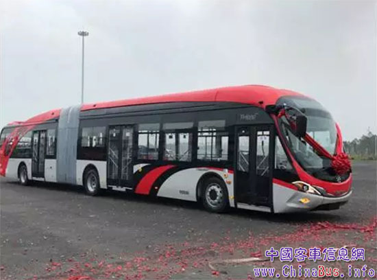 值得一提的是這款“巨無霸”中間的鉸鏈式連接管將車分為前后兩部分,形狀像地鐵的兩節(jié)車廂。而中間的鉸鏈式連接管形似手風琴的風箱,在行駛轉彎的時候,具有伸縮彈性,能很好地將車身前后兩部分協(xié)調帶動起來,不會夾傷乘客。