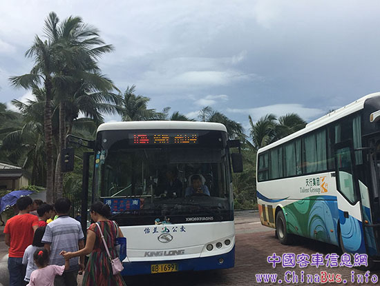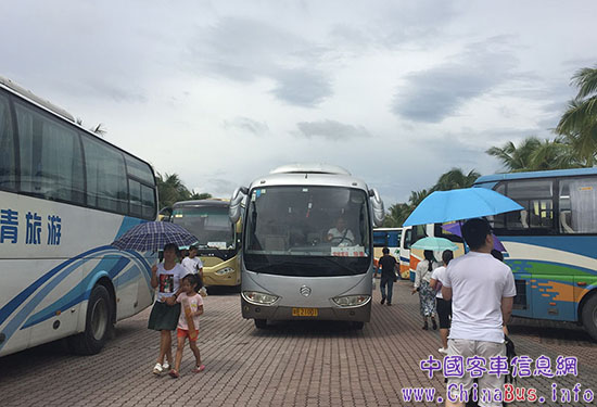 在這里,小編還想吐槽的是,三亞的天氣對于游客和車輛來說真是一種考驗,單單是這一個景區(qū)的游覽時間,就經(jīng)歷了大大小小三場雨和一次艷陽高照的“暴曬”。而這些客車能夠駐扎在這個氣候變化極快,空氣高濕度、高鹽度的海島城市,足以說明“中國客車”極為可靠的產(chǎn)品品質(zhì)。