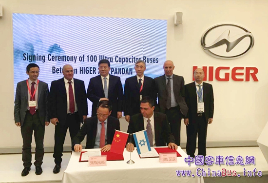 海格客車總經(jīng)理黃書平和以色列Pandan董事Eran簽訂了100輛超級(jí)電容公交的采購(gòu)協(xié)議,中國(guó)駐比利時(shí)大使曲星、商務(wù)參贊郭建軍、金龍汽車集團(tuán)董事長(zhǎng)黃莼、總經(jīng)理謝思瑜及其他部分中外客戶見證簽約。海格客車海外銷售公司副總經(jīng)理姜海峰對(duì)超級(jí)電容公交及其優(yōu)勢(shì)作詳細(xì)介紹。