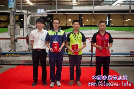 整車廠廠長占國強、電池廠副廠長余思恩為項目發(fā)布獎獲獎者頒獎