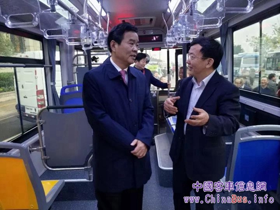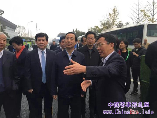 ▲湖南省副省長(zhǎng)何報(bào)翔參觀中車(chē)電動(dòng)新能源汽車(chē),申宇翔做詳細(xì)介紹