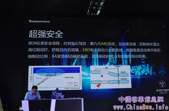 (福田輕型商用車商務汽車廣東大區(qū)經(jīng)理沈明先生為圖雅諾EV純電動物流車產(chǎn)品講解)