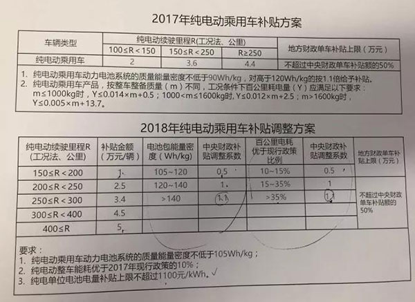 從最新曝光出來(lái)的補(bǔ)貼方案手稿來(lái)看,相比2017年新能源汽車(chē)補(bǔ)貼方案,2018年補(bǔ)貼方案更加細(xì)化。之前有消息稱2018年新能源汽車(chē)補(bǔ)貼將大幅退坡40%。而從此次曝光的內(nèi)容來(lái)看,新的補(bǔ)貼方案并非“一刀切”式的整體退坡,而是對(duì)純電動(dòng)乘用車(chē)、新能源客車(chē)、新能源貨車(chē)及專(zhuān)用車(chē)的各個(gè)分項(xiàng)指標(biāo)(比如續(xù)航里程、能量密度)進(jìn)行了更詳細(xì)的劃分,每個(gè)類(lèi)別分別對(duì)應(yīng)了不同的補(bǔ)貼計(jì)算方式。