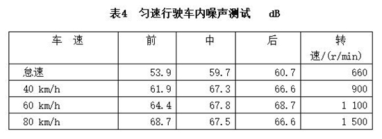 NVH性能是客車設計中的最大難點,也是衡量一款客車技術水平的主要指標。在整個試駕過程中,領航者給人印象最深的就是安靜的車內(nèi)環(huán)境,尤其是最后一排座椅的安靜程度超出了想象。這種感受來自于客觀的噪聲測試數(shù)據(jù)和直觀的切身感受。在不同車速時,車內(nèi)總體噪聲值平均在62~68 dB之間,使得駕駛員和乘客都可以獲得良好的工作和休息環(huán)境。通常后置式客車的最后一排會有較大的噪聲,但領航者改變了這一情況,我們測得的噪聲值平均只有67 dB,在某些車速甚至低于中部和前部噪聲。這是因為OM457動力本身就具有低噪聲特點,而且使用了專用的懸置減振墊,同時也得益于金旅在發(fā)動機艙NVH方面進行的針對性處理。