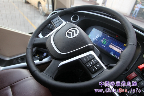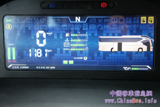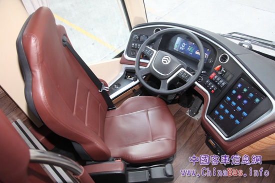作為試駕者,我最先關注的是駕駛區(qū)設計。當看到一部已經(jīng)旋轉(zhuǎn)好45°等待迎接駕駛者進入的座椅時,估計很多駕駛者會如我一樣被這種貼心的設計所打動。由于客車以乘客滿意度為主要衡量指標,國內(nèi)客車產(chǎn)品的設計者會把更多精力放在乘客區(qū),普遍存在著對駕駛區(qū)關注度不夠的問題。但事實上,駕駛員的工作狀態(tài)對一輛客車的安全性、經(jīng)濟性和舒適性有著至關重要的影響。從領航者身上我們看到了國內(nèi)客車在駕駛區(qū)設計理念上的改變,除了一款舒適可旋轉(zhuǎn)的空氣懸浮座椅,AMT變速器、一鍵啟動裝置、電動車窗及后視鏡調(diào)節(jié)、電動遮陽簾、電子駐車制動等自動化配置,都會讓駕駛者像駕駛一輛家用車那樣輕松。