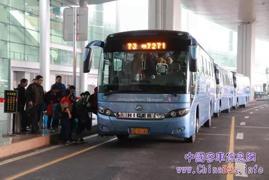 由于直達(dá)T3航站樓的地鐵10號(hào)線還未開通,重慶公交控股集團(tuán)兩江分公司(簡(jiǎn)稱:兩江公交)一次性投入60輛嶄新的海格新能源客車。其中30輛用于航站樓之間的接駁中轉(zhuǎn),30輛用作解放碑、上清寺等市內(nèi)各大中心商圈到T3的機(jī)場(chǎng)巴士。免費(fèi)中轉(zhuǎn)巴士的開通保障了旅客的順利出行,贏得了大家的認(rèn)可。