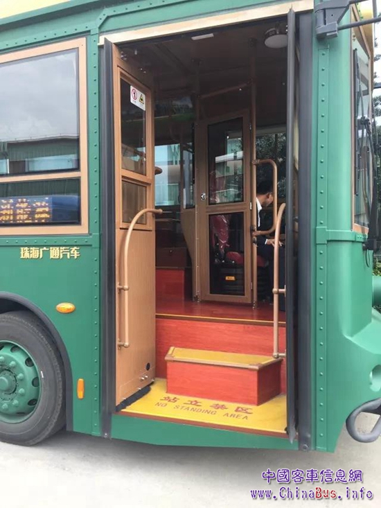 銀隆在仿古鐺鐺車和普通純電動(dòng)公交車上配置了內(nèi)擺式車門,內(nèi)擺式又稱內(nèi)開(kāi)回移式乘客門。內(nèi)擺式乘客門是乘客門中開(kāi)啟后凈開(kāi)度最大的一種,方便乘客上下車,尤其適用于城市客車。