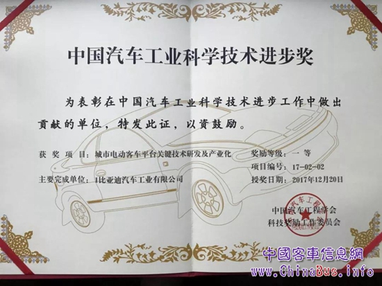 創(chuàng)新“制”勝 比亞迪客車斬獲“中國汽車工業(yè)科學(xué)技術(shù)進(jìn)步獎(jiǎng)”一等獎(jiǎng)