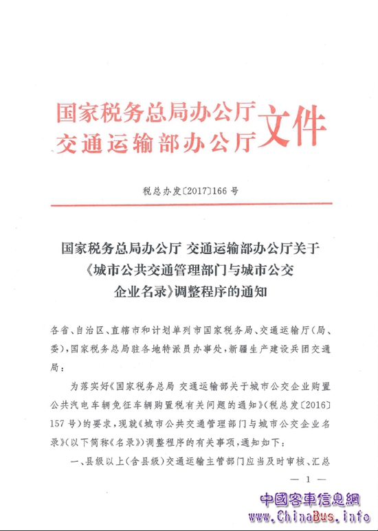 國家稅務總局辦公廳 交通運輸部辦公廳關(guān)于《城市公共交通管理部門與城市公交企業(yè)名錄》調(diào)整程序的通知