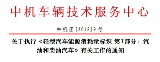 關(guān)于執(zhí)行《輕型汽車能源消耗量標識 第1部分:汽油和柴油汽車》有關(guān)工作的通知