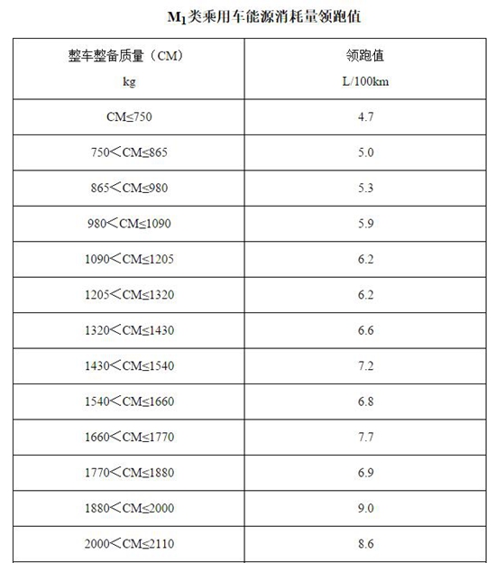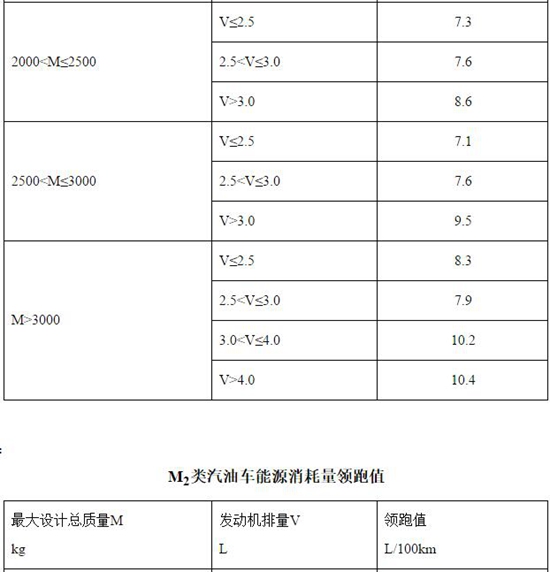 1.乘用車:最大設(shè)計總質(zhì)量不超過3500kg的M1類車輛,能源消耗量領(lǐng)跑值見附表1;