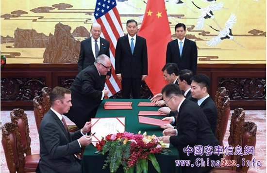11月份,在美國總統(tǒng)特朗普訪華期間,在中美兩國CEO商務(wù)代表團見證下,中國第一大商用車集團——福田汽車集團,與美國TDG集團雙方共同簽署了未來公共交通工具智慧城市解決方案合作備忘錄,福田歐輝作為此次簽約的有效載體,更是成為了本次中美經(jīng)貿(mào)簽約中,中國汽車工業(yè)走向世界唯一代表,在構(gòu)建全球交通領(lǐng)域“綠色、智能”大格局的同時,樹立了中美智慧交通合作的典范。