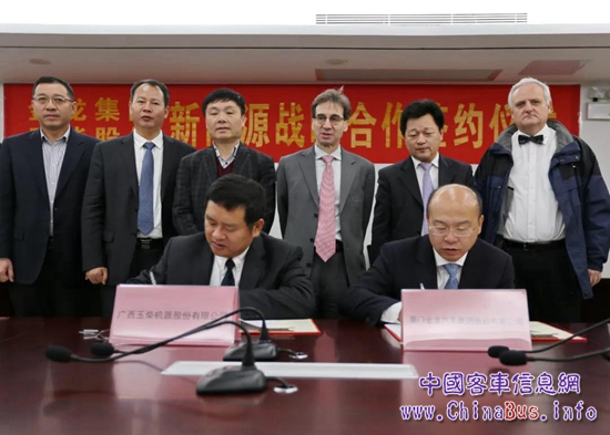 1月8日,廣西玉柴機器股份有限公司(以下簡稱玉柴股份)與廈門金龍汽車集團股份有限公司(以下簡稱金龍集團)簽訂新能源產(chǎn)品戰(zhàn)略合作協(xié)議,簽約儀式在廣西玉林舉行。金龍集團總裁謝思瑜與玉柴股份總裁吳其偉代表雙方公司簽訂了新能源產(chǎn)品戰(zhàn)略合作協(xié)議。