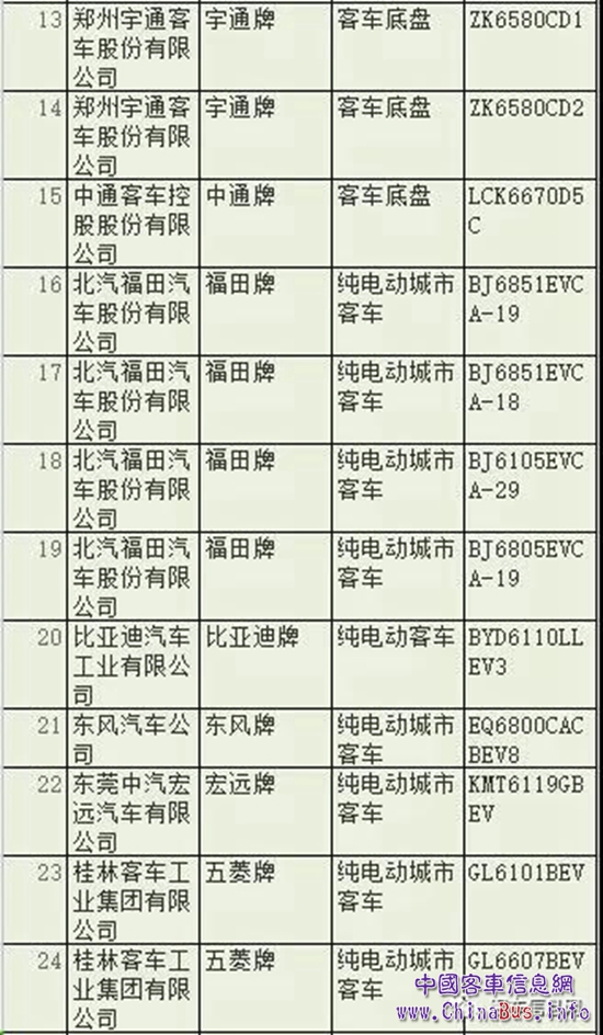 以下為第304批新產(chǎn)品公示(客車部分):