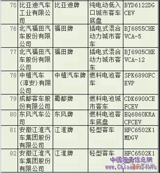 據(jù)中國客車信息網(wǎng)統(tǒng)計(jì),本批申報(bào)產(chǎn)品中共有82款客車產(chǎn)品,其中純電動(dòng)客車產(chǎn)品60款(含底盤),插電式混合動(dòng)力客車產(chǎn)品2款,燃料電池客車產(chǎn)品3款(含底盤)。值得注意的是,兩款插電式混合動(dòng)力客車均來自北汽福田。
