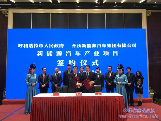 1月18日,開沃新能源汽車集團(tuán)有限公司與呼和浩特市人民政府簽署新能源汽車產(chǎn)業(yè)項(xiàng)目戰(zhàn)略合作,內(nèi)蒙古自治區(qū)黨委常委、呼和浩特市委書記云光中,呼和浩特市委副書記、市長馮玉臻,市委常委、秘書長吳志強(qiáng)、副市長畢國臣,市政府黨組成員、經(jīng)濟(jì)技術(shù)開發(fā)區(qū)黨工委書記李建平,土左旗委書記斯日古楞,開沃汽車集團(tuán)董事長黃宏生,副總裁金曉輝以及呼市政協(xié)、財(cái)政局、經(jīng)信委、規(guī)劃局、國土局、發(fā)改委等相關(guān)部門領(lǐng)導(dǎo)出席本次簽約儀式。