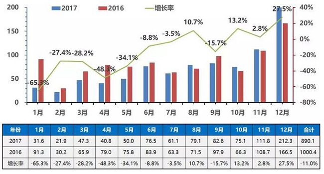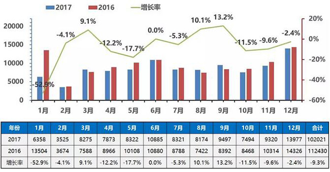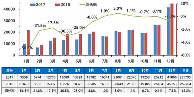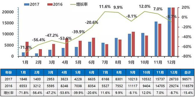 2017年年度中國(guó)客車總銷量走勢(shì)圖
