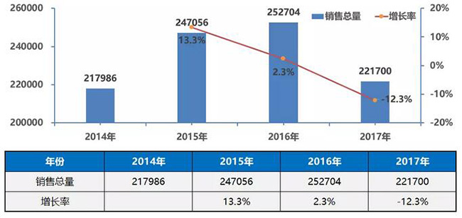 1、校車市場(chǎng)從2012年啟動(dòng)以來(lái),經(jīng)過(guò)幾年的發(fā)展,年銷量基本穩(wěn)定在2.4萬(wàn)輛左右,2017年萎縮至2.1萬(wàn)輛。